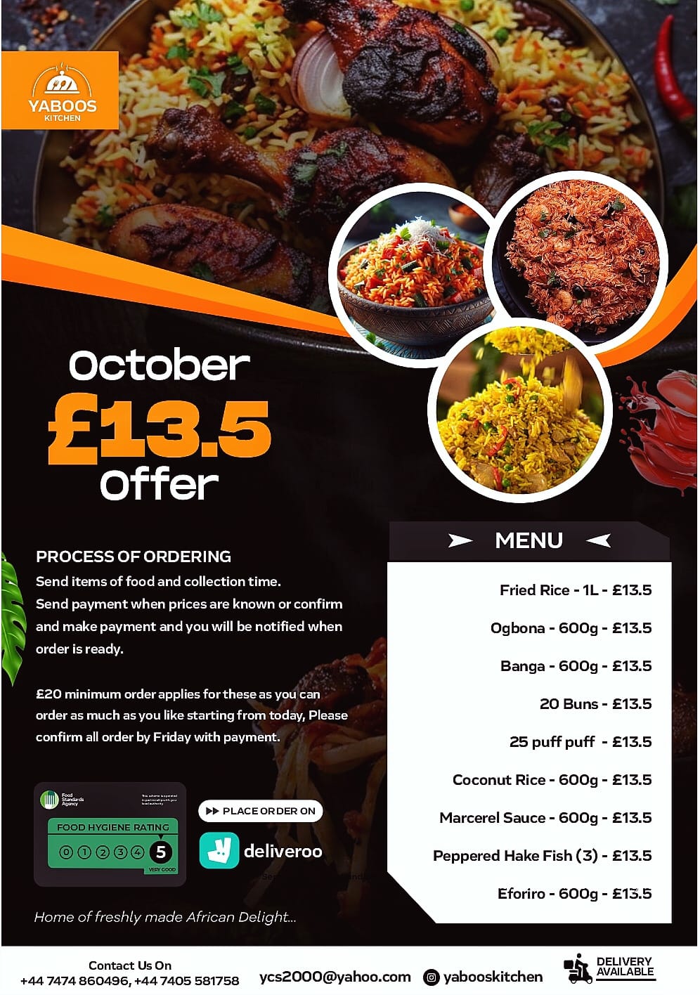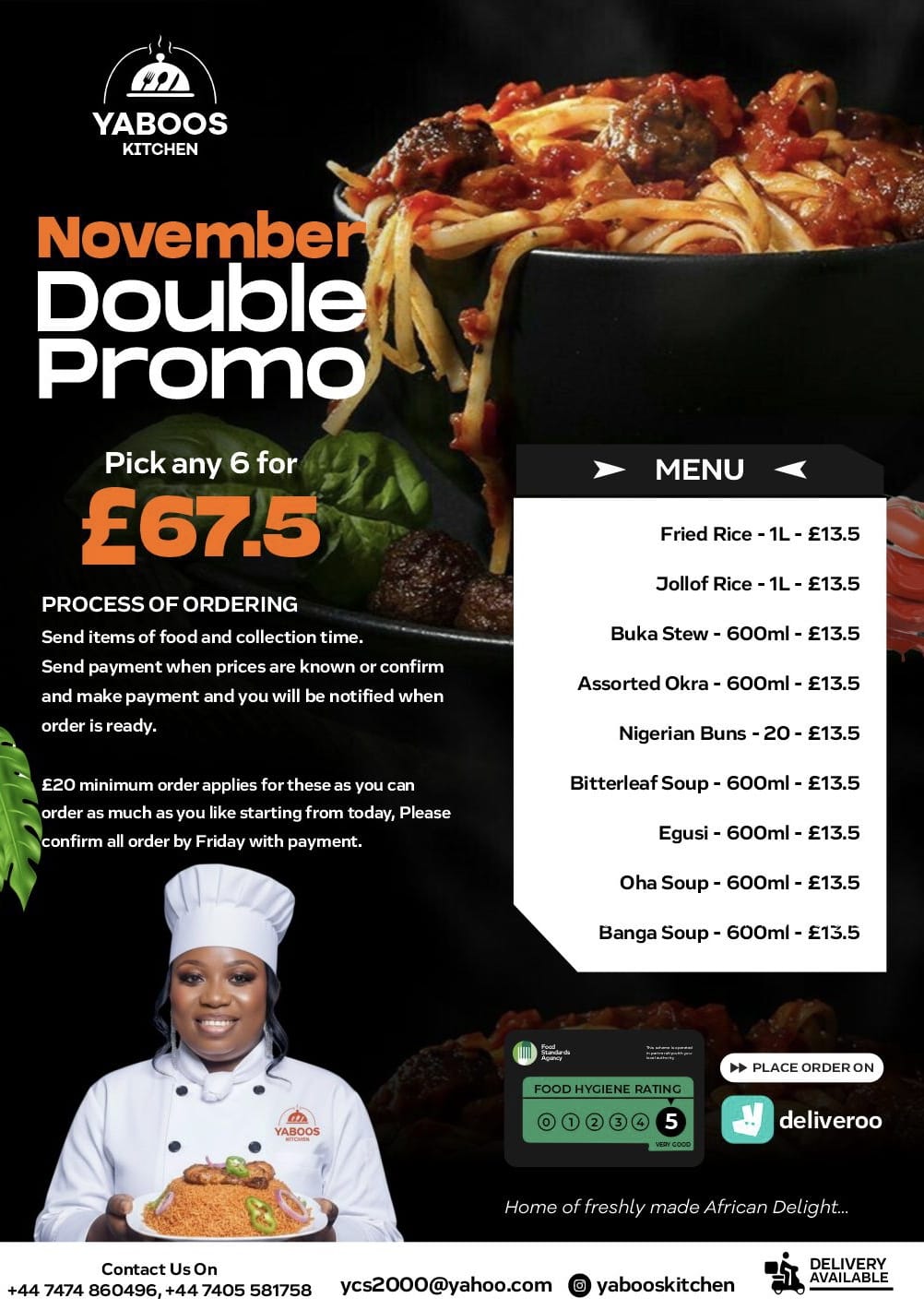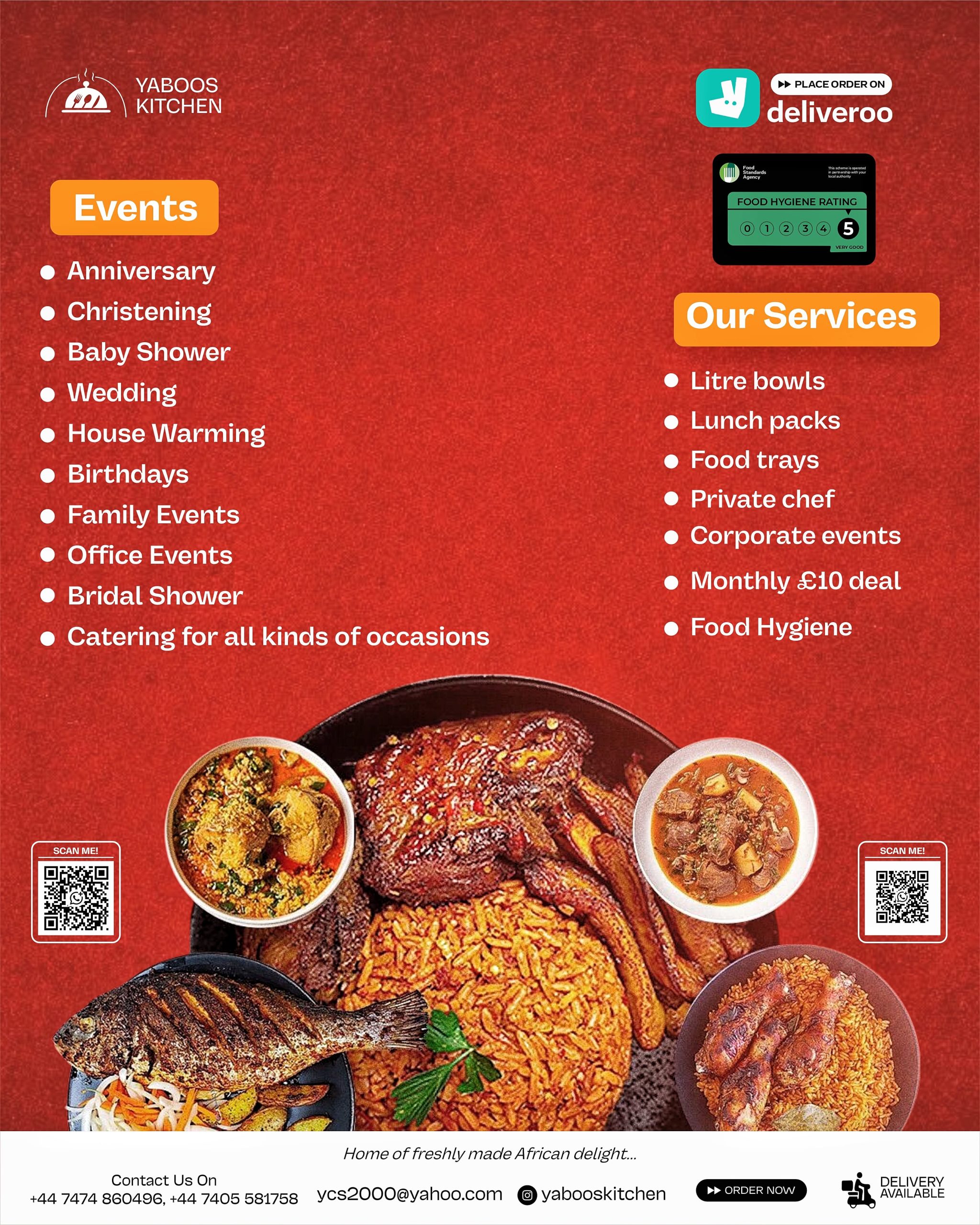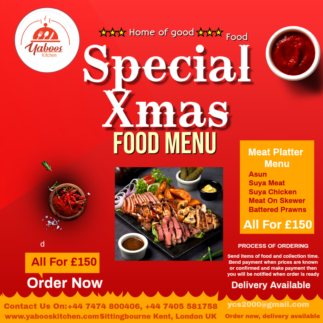 For a quick response please contact Yabooskitchen numbers: +447474860496 +447405581758