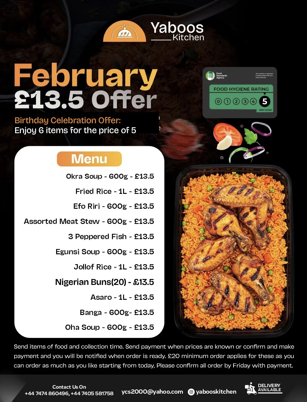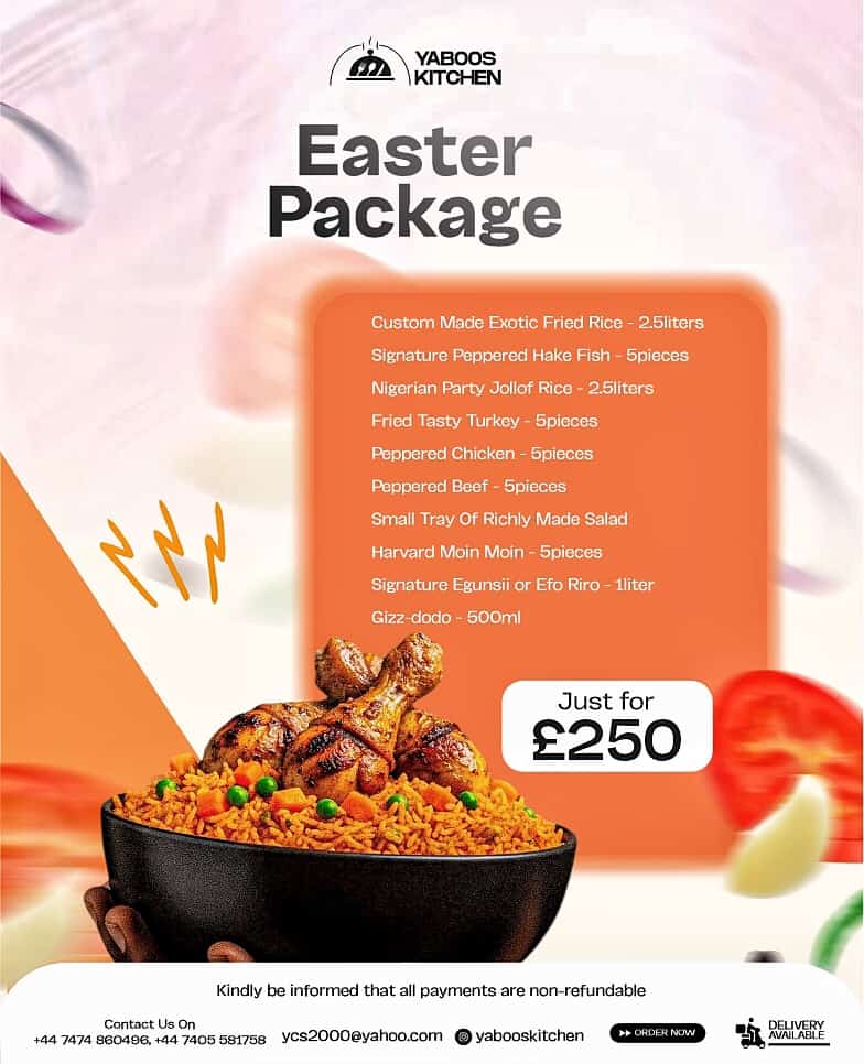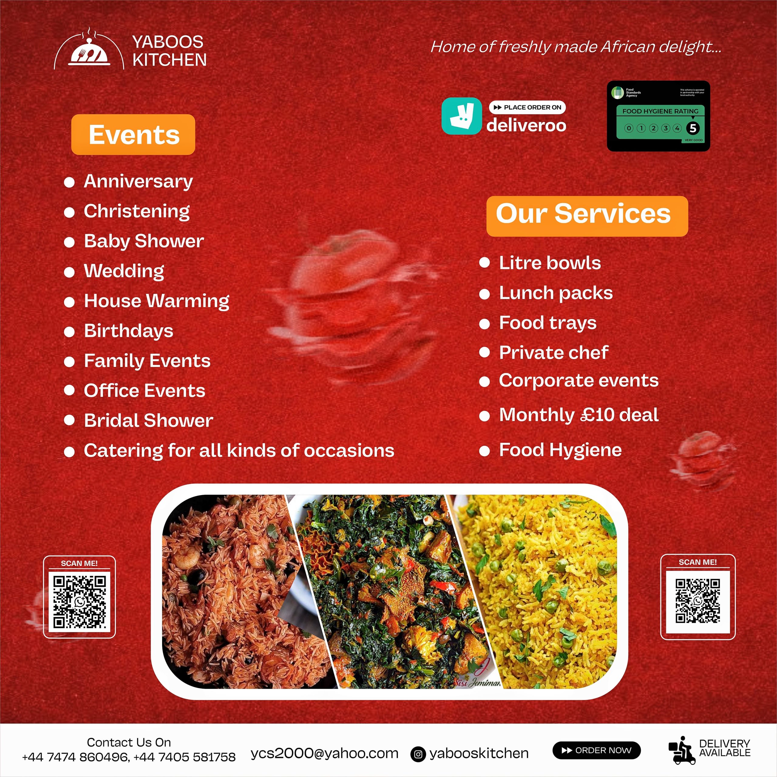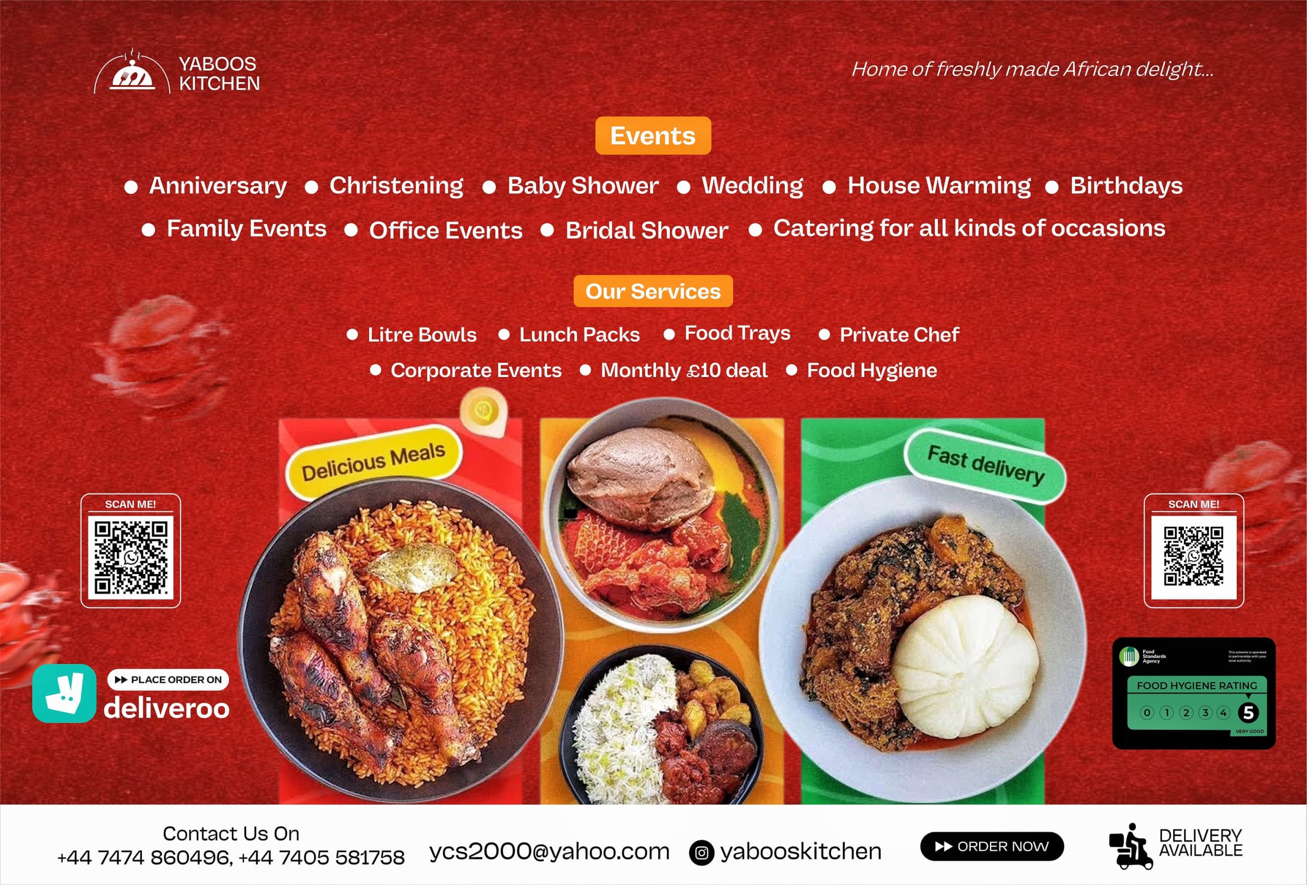 For a quick response please contact Yabooskitchen numbers: +447474860496 +447405581758